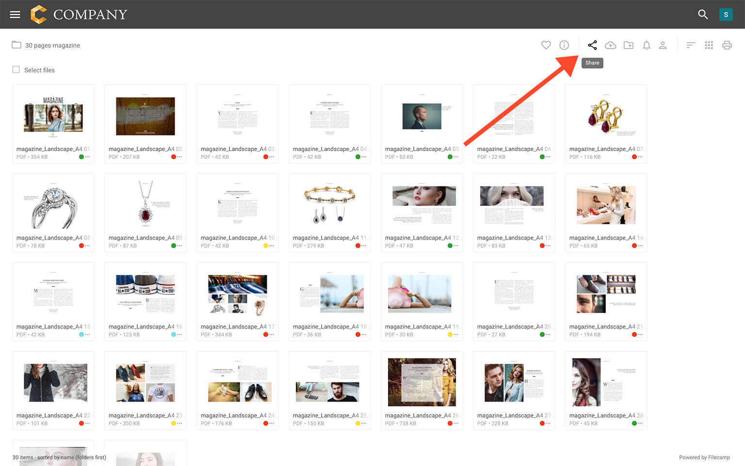 Navigate to the folder that contains the files you want to share, then click the Share icon.
