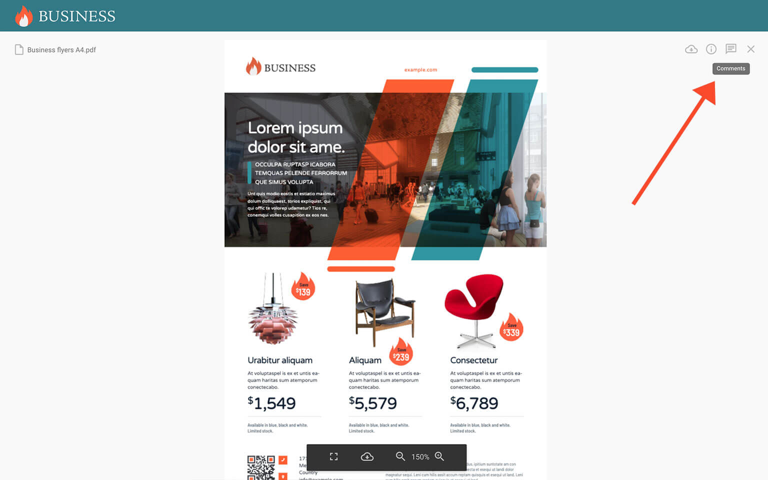 Any recipients of the link can now start adding comments to the file by clicking at the Comments icon in the Toolbar.
