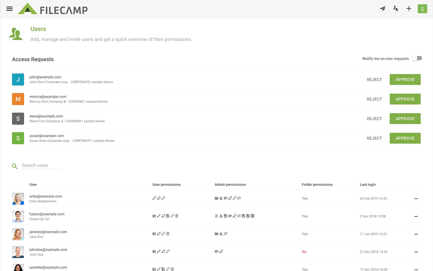 The more users you have accessing your Filecamp the more you have to deal with user management.