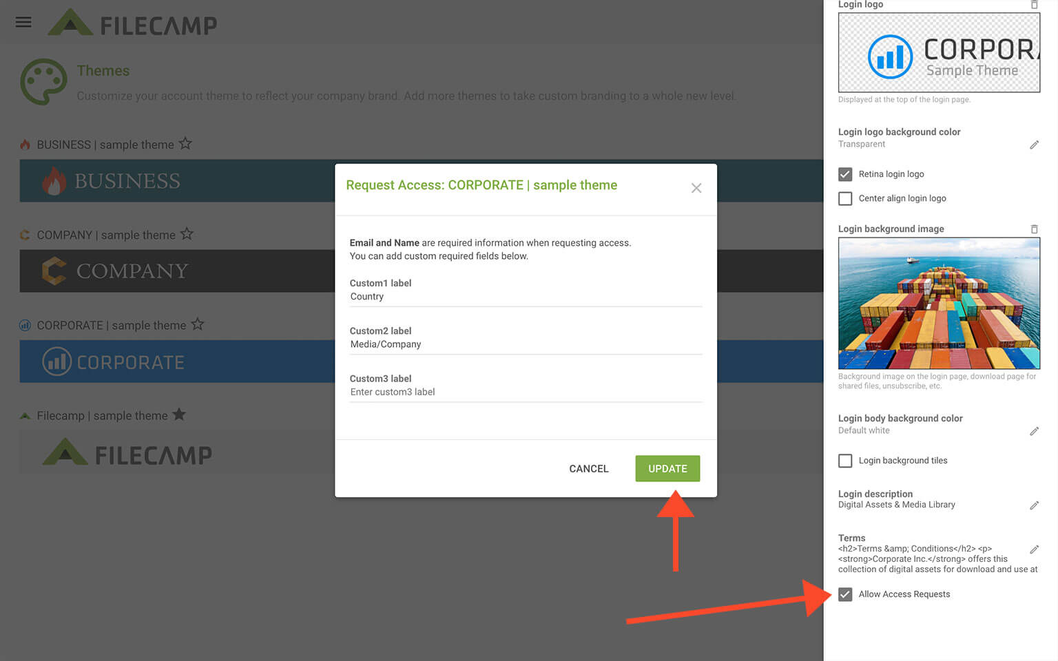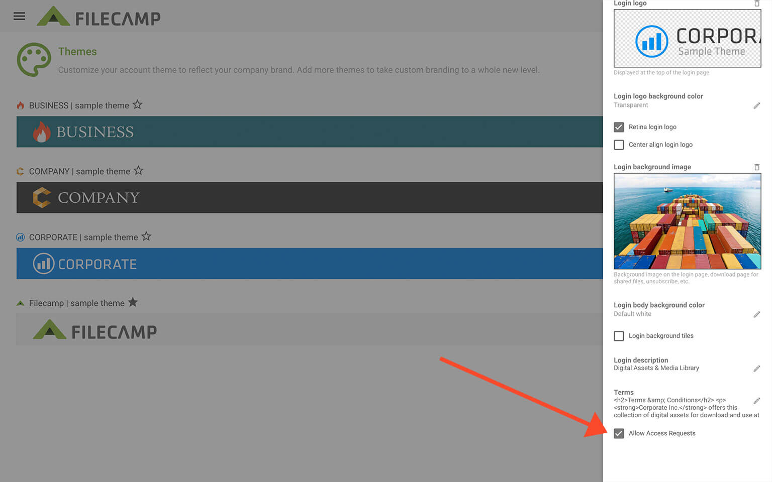 For maximum flexibility, the Access Request feature can be enabled/disabled on the Theme level. So if you are operating with multiple themes you can turn this feature on for some of your Themes only. Read more about Themes.